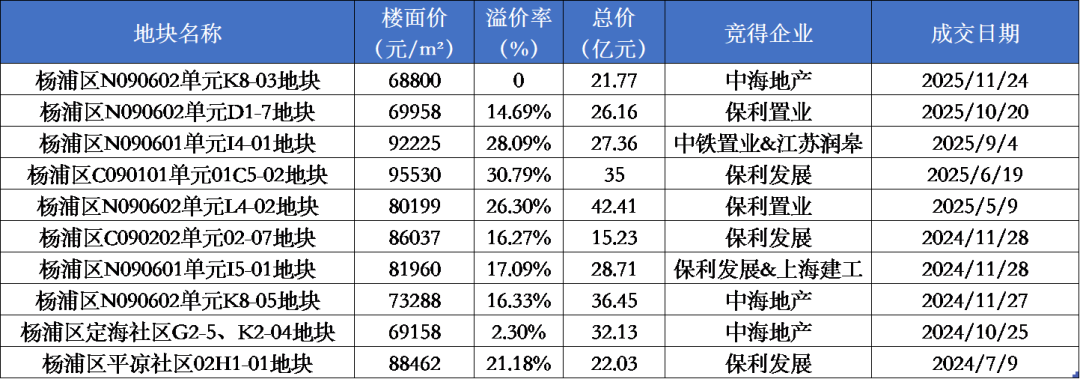 进深君统计了2024年下半年以来杨浦滨江的土拍情况: