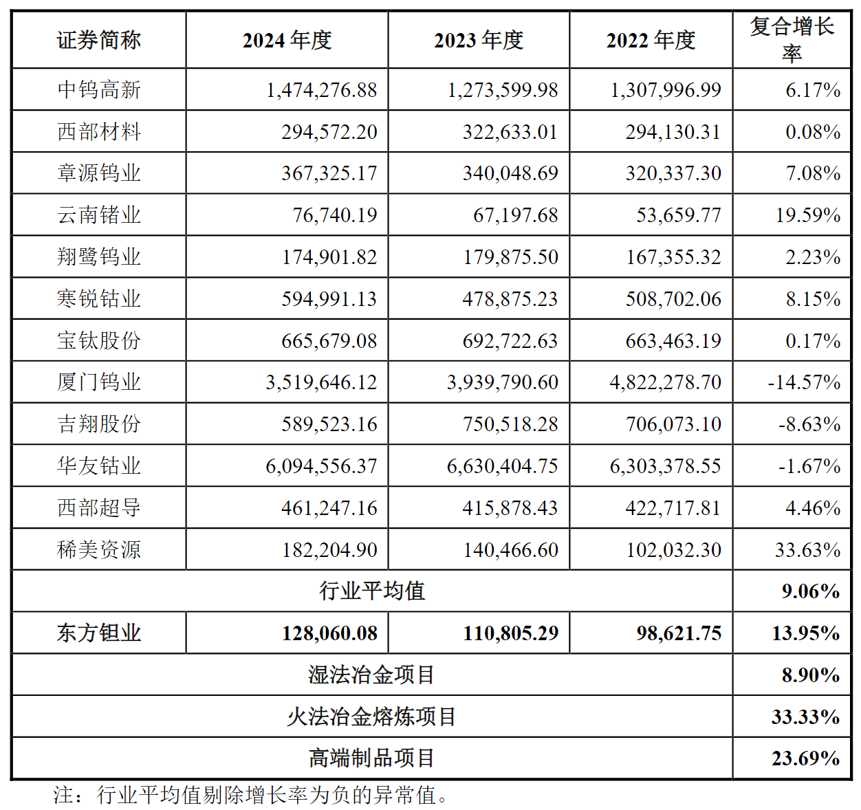 图片说明:东方钽业募投项目收入复合增长率与公司及同行业可比公司对比情况,数据来源于公告