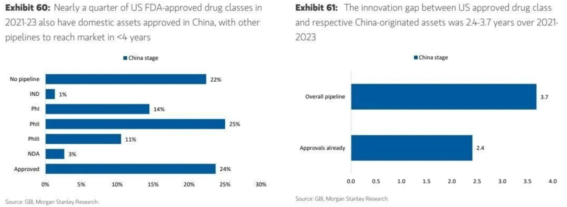 图片说明:中国创新药距离美国创新药的差距快速缩短,数据来源于摩根士丹利