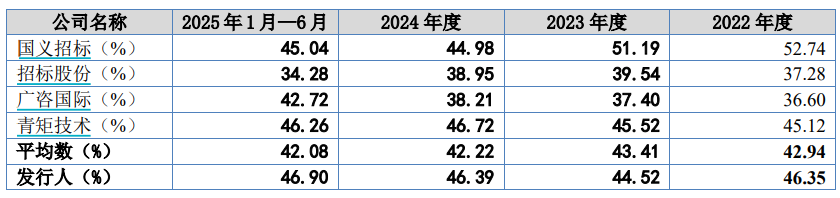 毛利率方面,2022年至2025年上半年,中诚咨询毛利率分别为46.35%、44.52%、46.39%及46.90%,整体保持在较高水平且相对稳定。值得一提的是,公司毛利率持续高于行业平均水平(同期同行业可比公司毛利率平均水平分别为42.94%、43.41%、42.22%、42.08%)。这种持续领先的盈利表现,既源于核心业务规模扩张带来的成本摊薄效应,也得益于技术赋能下的效率提升与成本优化。