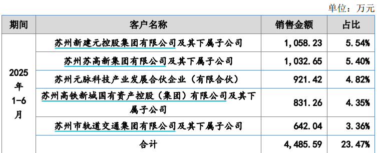 表:中诚咨询2025年1-6月前五大客户销售金额及占当期销售总额比例