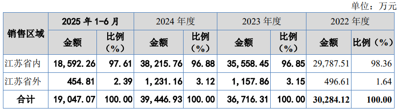 2022年至2025年上半年,中诚咨询在苏州市的主营业务收入分别为2.30亿元、3.02亿元、3.22亿元及1.55亿元,主营收入占比分别为75.99%、82.14%、81.69%及81.62%。高占比的区域收入不仅有效保障了营收增长,更印证了公司在核心市场的品牌认可度与业务渗透能力。