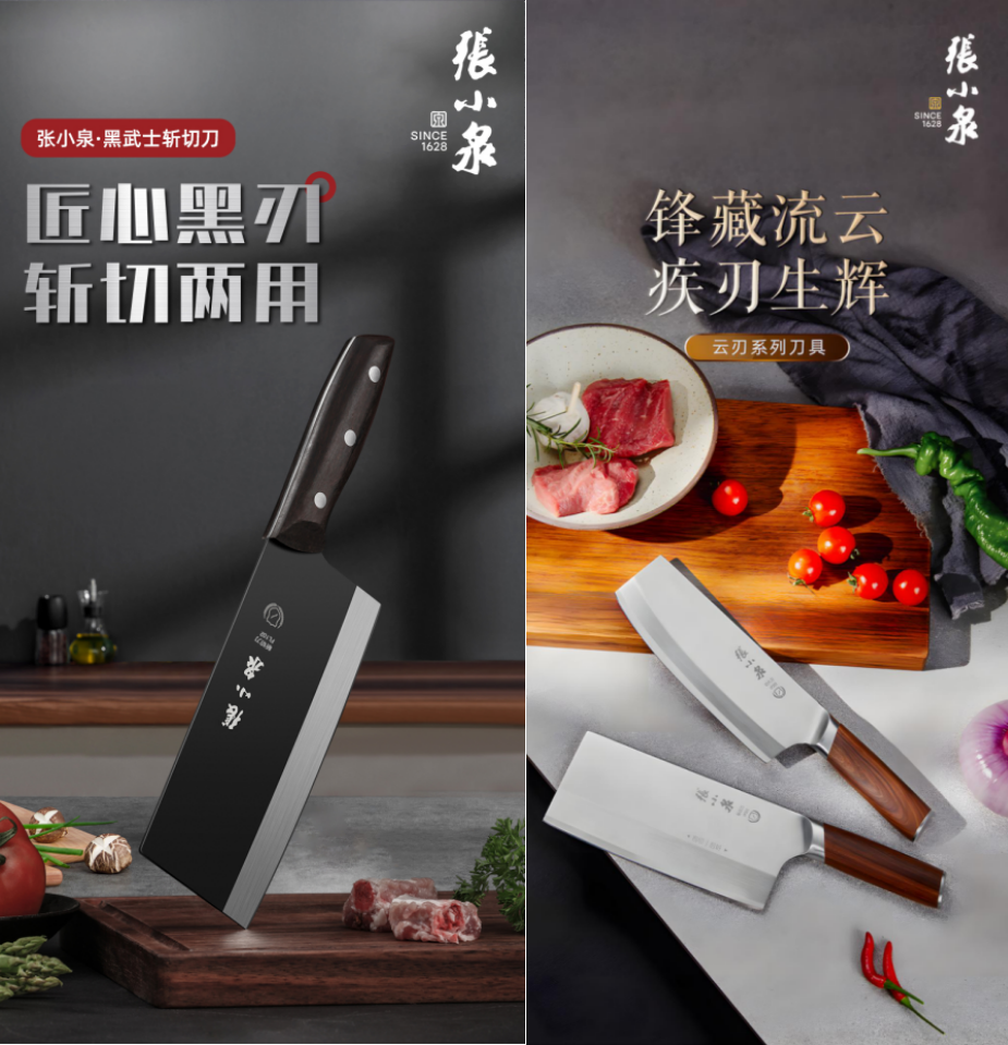在营销层面,张小泉走出了一条“守内核、破圈层”的特色道路。线上采用“达人分销+品牌自播”模式,同时发起“网上晒图讲故事”活动,鼓励用户分享家中老张小泉刀具的家庭故事,以情感共鸣强化品牌忠诚度。