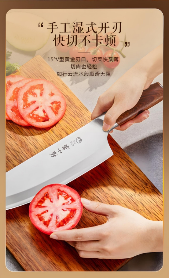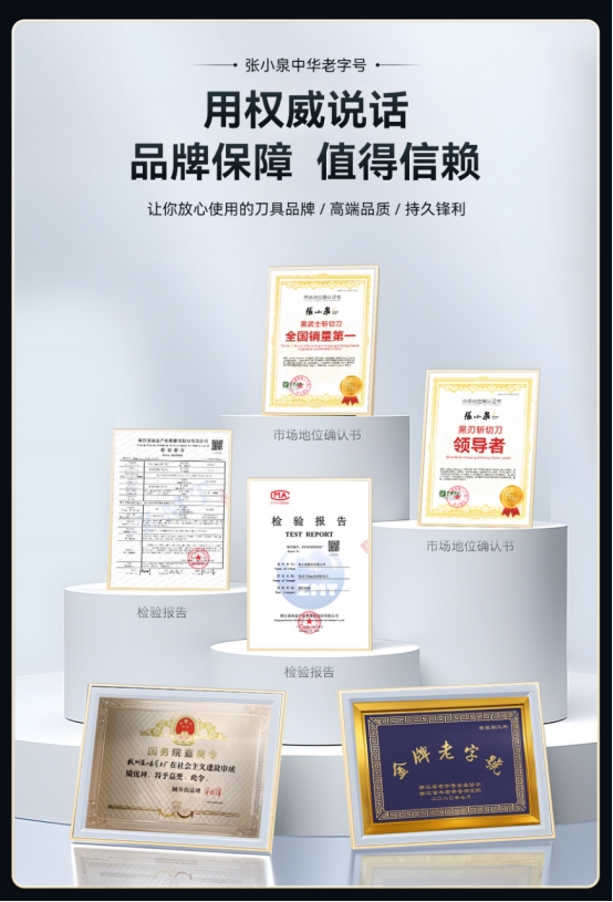 深厚的文化底蕴与过硬的品质口碑,是张小泉立足市场的壁垒。近四个世纪的磨炼,让 “三锻三淬”“一冷二浸三回火”等传统工艺成为品牌独有的文化基因,刃口“波浪纹”、龙泉竹材手工手柄等细节,赋予产品“物有温度”的情感价值,形成差异化优势。在品质上,品牌始终恪守“良钢精作,匠心铸美”的核心,选用40Cr13钢材等优质原料,将手工开刃(专利开刃技术)与现代技术相融合,产品的锋利度、耐用性与人体工学设计历经市场检验。从1915年斩获巴拿马万国博览会大奖,到如今厨房菜刀获得全国好评第一,张小泉的品质实力广受市场和消费者青睐。