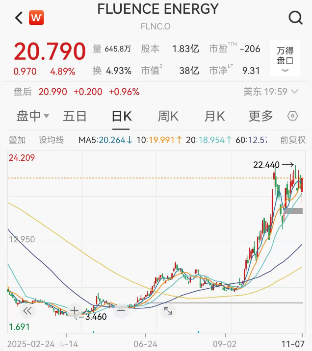 图片说明:美股Fluence Energy因AIDC+储能而暴涨,数据来源于Wind