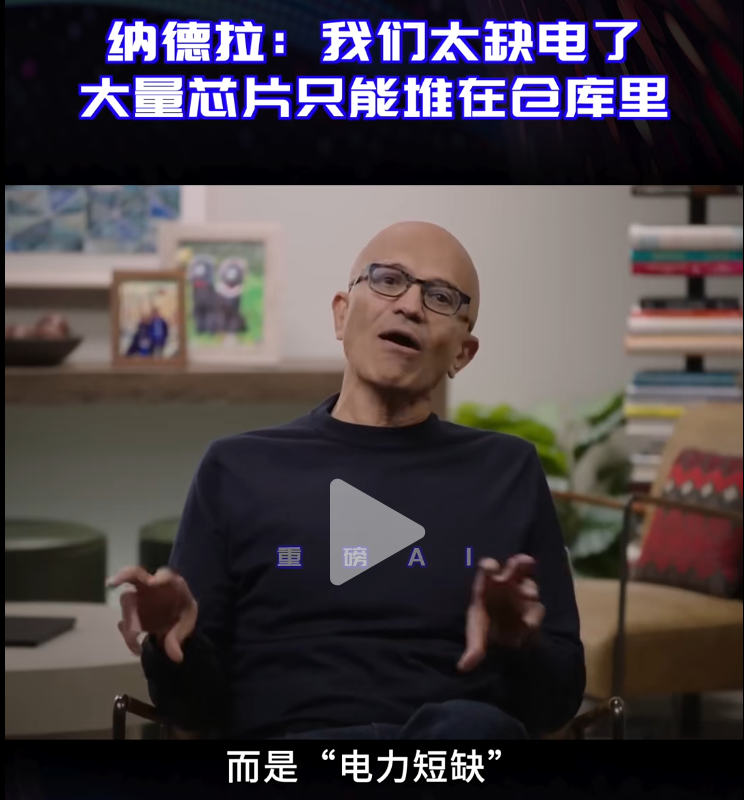 图片说明:微软CEO表示解决缺电是目前最紧要的问题,数据来源于重磅AI