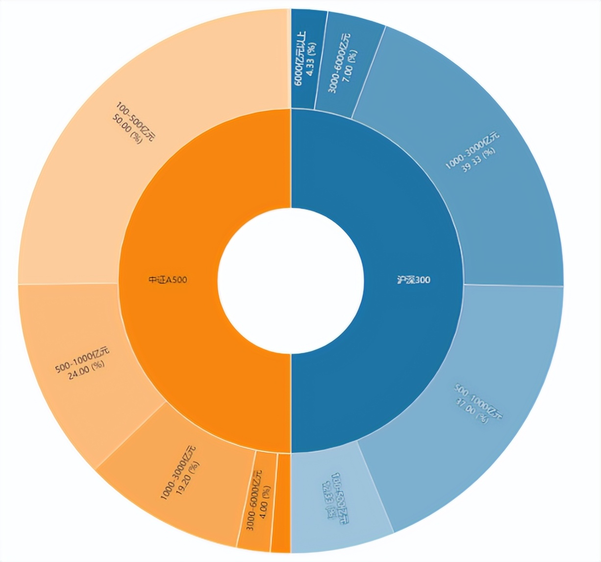 图片来源:Wind、中证A500与沪深300流通市值分布对比,截至2025.11.10。