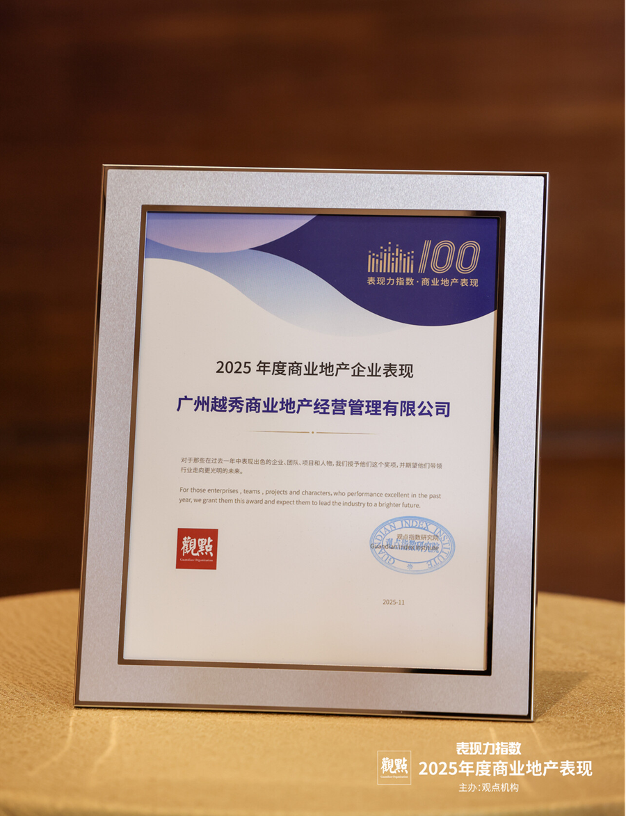 凭借卓越的综合实力,越秀商管荣获2025年度商业地产企业表现TOP12,越秀房产基金同时获得商业不动产投资管理机构表现TOP10。这不仅是越秀商管在商业地产的综合实力与均衡发展成果,更是对践行“城市生活合伙人”理念、通过体系化运营为多元客群创造真实价值的印证。