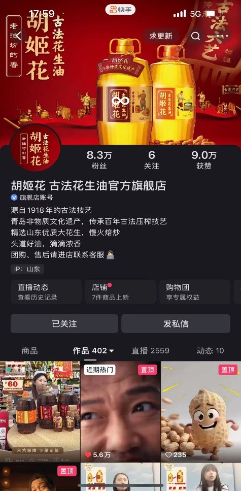 在此基础上,胡姬花在双11大促中联合快手电商“民生专项”推出联名款花生油产品,依托平台曝光资源、商品补贴等扶持,精准高效引爆销量,目前该产品销量已突破7万桶。单品的热销,拉动胡姬花品牌在快手电商的整体销售业绩提升。基于双11期间打下的人群种草效果,胡姬花将在快手电商年货节推出礼盒产品,进一步开拓高端产品市场。