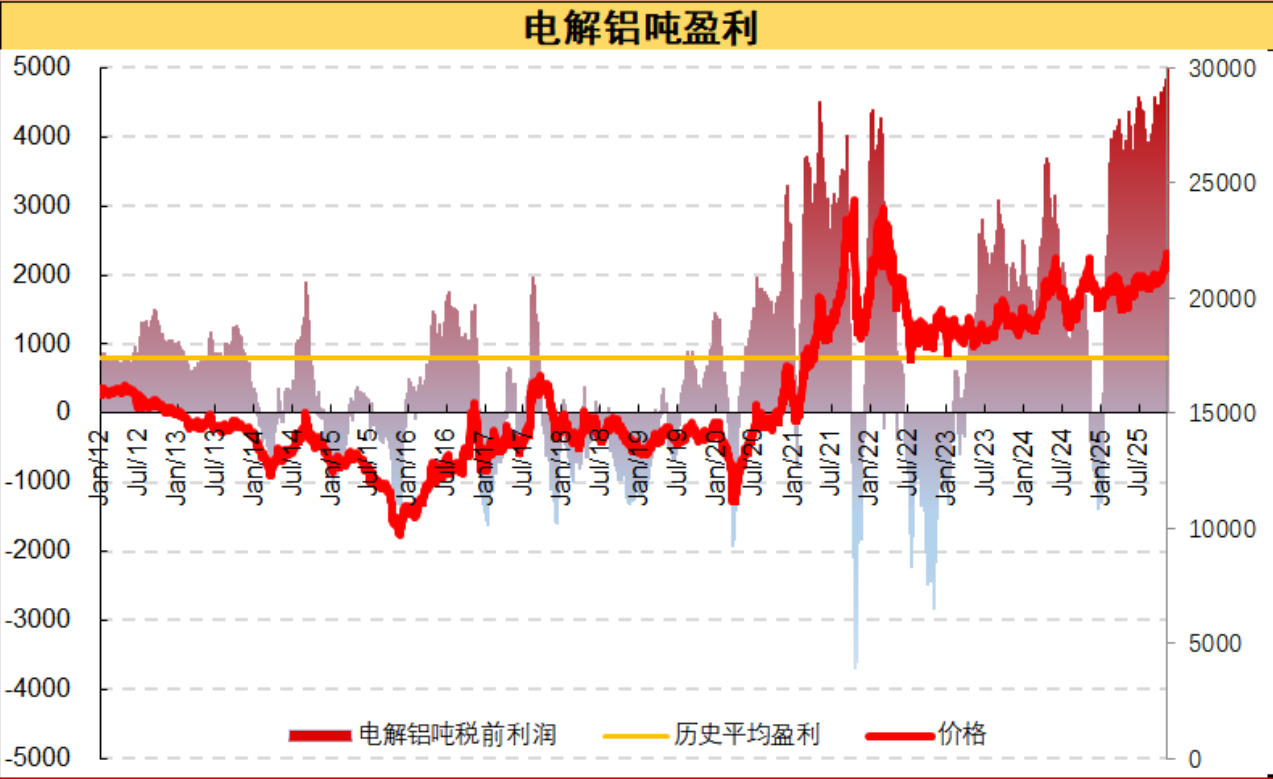 图片说明:电解铝吨税前利润