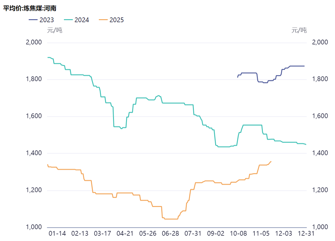 图片说明:河南炼焦煤价格季节性走势,数据来源于同花顺