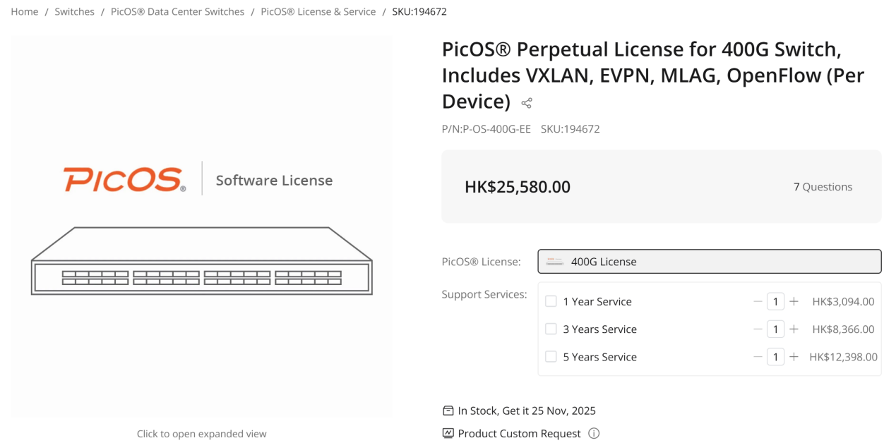通过在FS.COM查询基于博通Tomahawk系列芯片的交换机报价,目前32端口、400G白牌交换机的报价约1.5~2万美元;64端口、400G白牌交换机的报价约2.5~3万美元,64端口、800G白牌交换机的报价约4~7万美元。