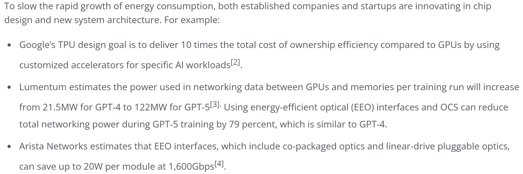 此外,美国半导体巨头应用材料于2025年4月发表文章《Optical Circuit Switches Show Promise for More Energy-Efficient AI Data Centers》,文中明确表示,利用EEO接口和OCS可以将GPT-5的训练能耗降低79%。