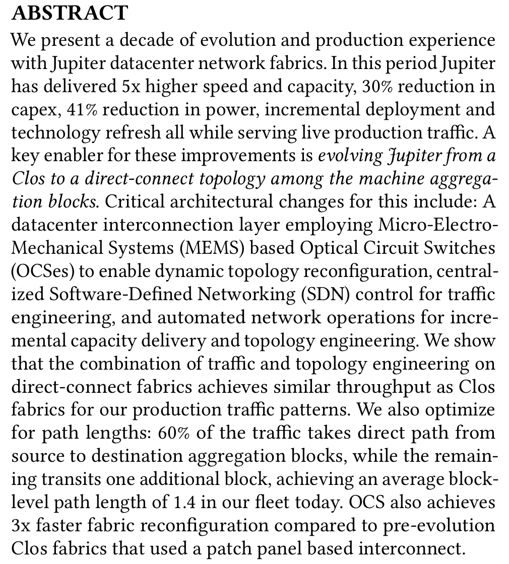 谷歌曾于Google Research上发表论文《Jupiter Evolving: Transforming Google's Datacenter Network via Optical Circuit Switches and Software-Defined Networking》,这是谷歌官方首次大规模公开其数据中心网络架构演进细节的权威论文。
