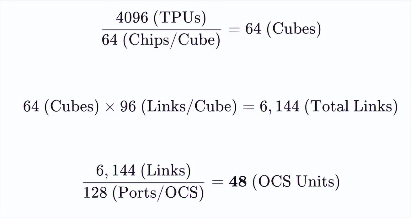 换句话说,在谷歌TPU v4架构下,TPU和OCS的数量关系比例为85:1。尽管此后谷歌又发布了TPU v5等新的架构,但TPU和OCS的数量关系基本保持稳定。