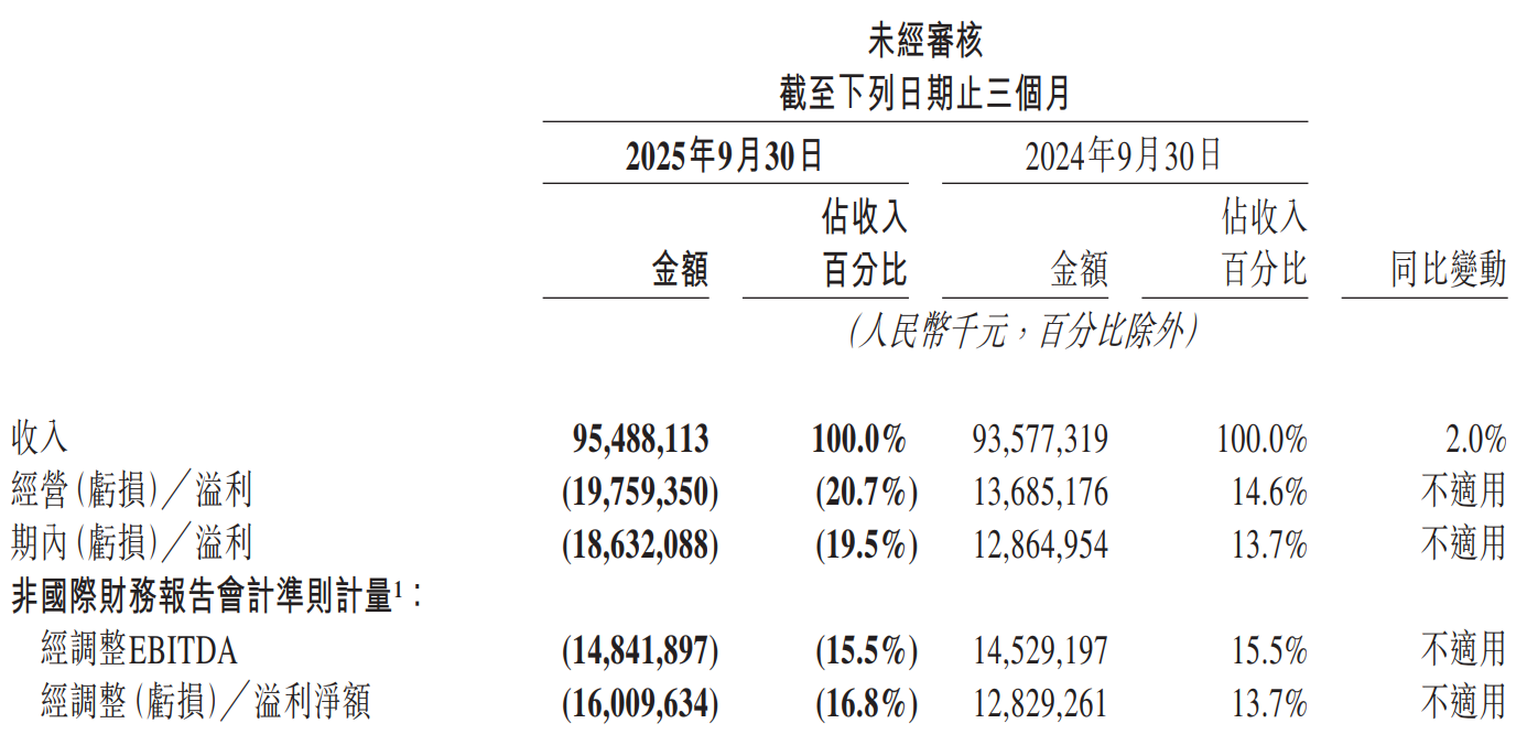 图片说明:美团2025年第三季报财务摘要,数据来源于美团财报