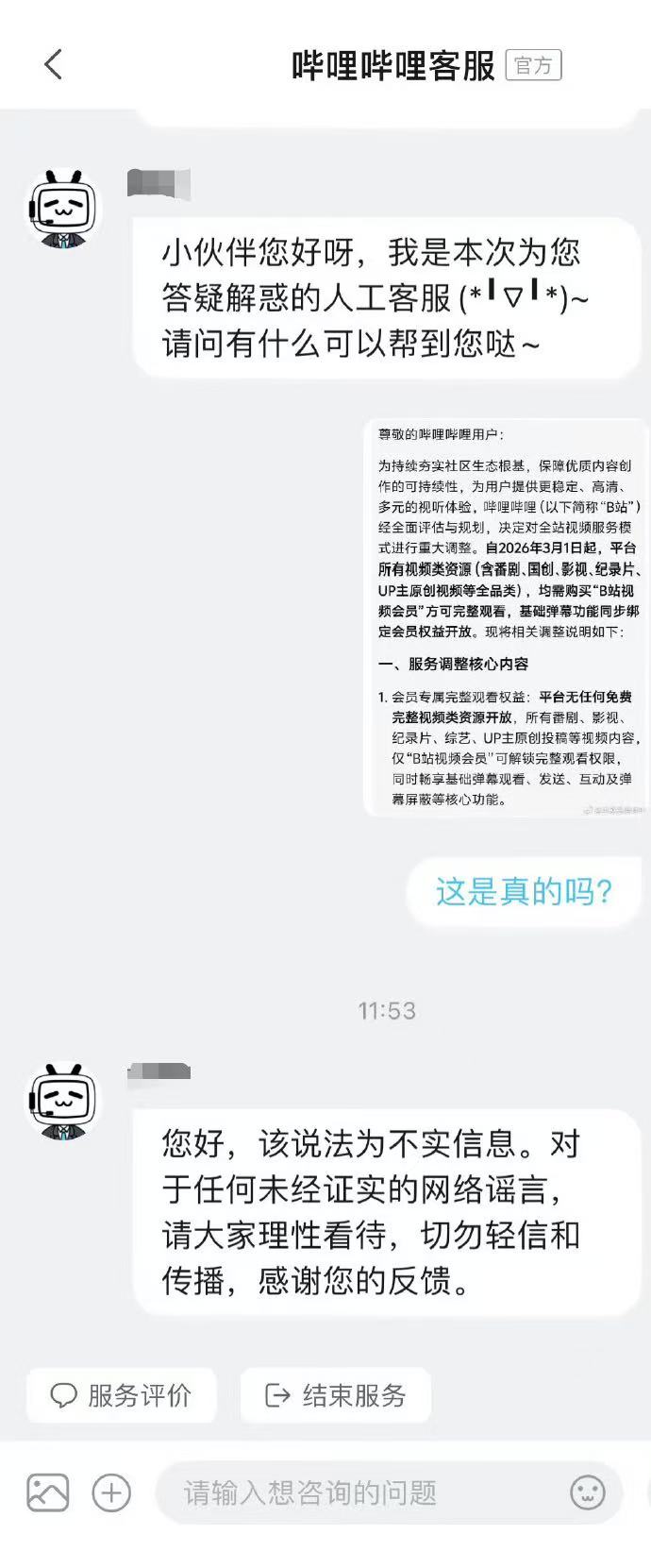 对此,12月11日,B站客服回应称:“该消息为不实消息,对于造谣者我们将追究法律责任。也请大家切勿轻信和传播网络谣言。”
