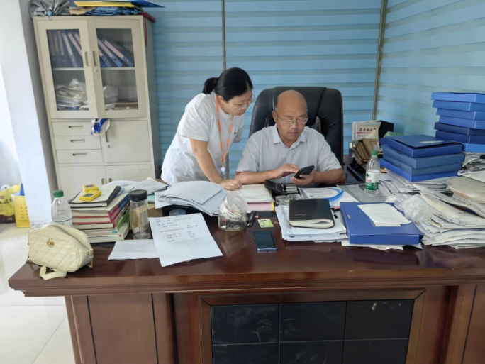 (图为淮安分公司业务人员为桂总推荐融资方案)