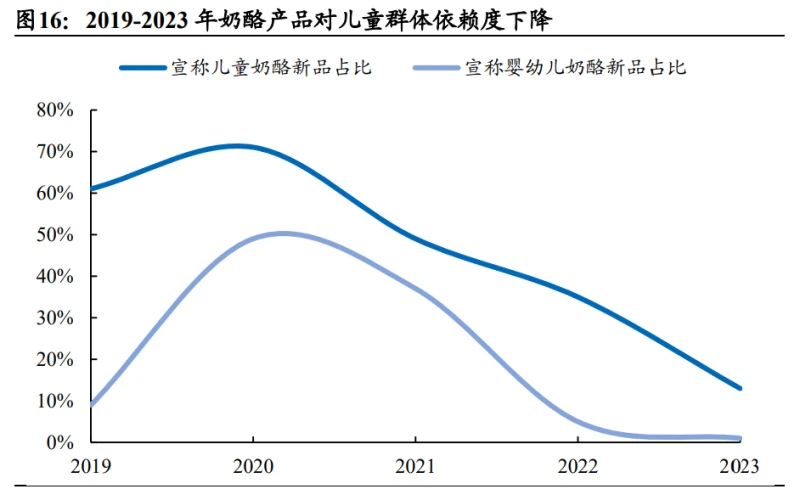 图片说明:2019-2023年奶酪产品对儿童群体依赖度下降,数据来源于MINTEL、国泰海通证券