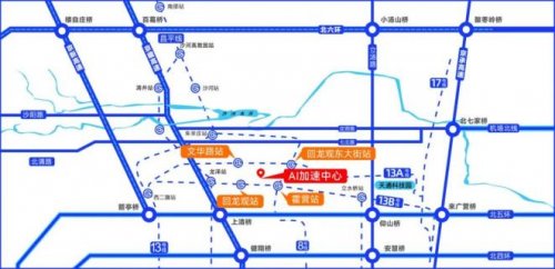昌发展AI加速中心的区位交通优势尤为凸显。园区与18号线文华路站近在咫尺,真正实现了“地铁直达公司门口”。不仅如此,周边还被回龙观东大街站、回龙观站、霍营站等多个地铁站环绕,并辅以京藏高速、机场快速路以及首都首条自行车专用道,构成了一个立体高效、多元畅达的交通网络,让员工通勤与商务往来变得高效无忧。