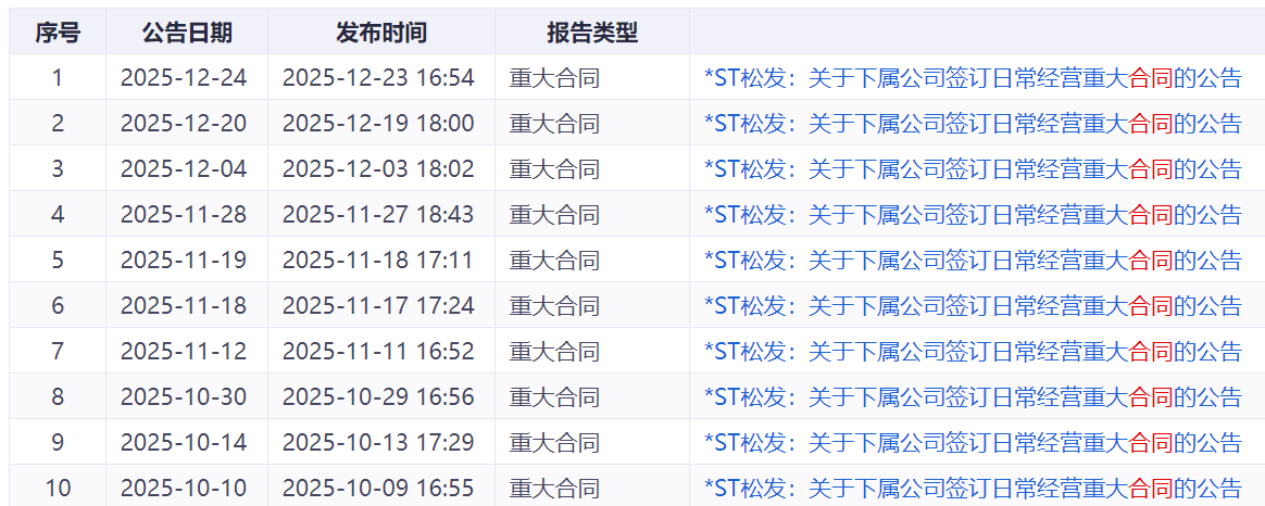 随着2025年进入收官阶段,资本市场对来年业绩具备超预期潜力的标的关注度升温。其中,*ST松发(603268.SH)因其核心子公司近期密集斩获造船大单,其业绩成长性成为市场焦点。
