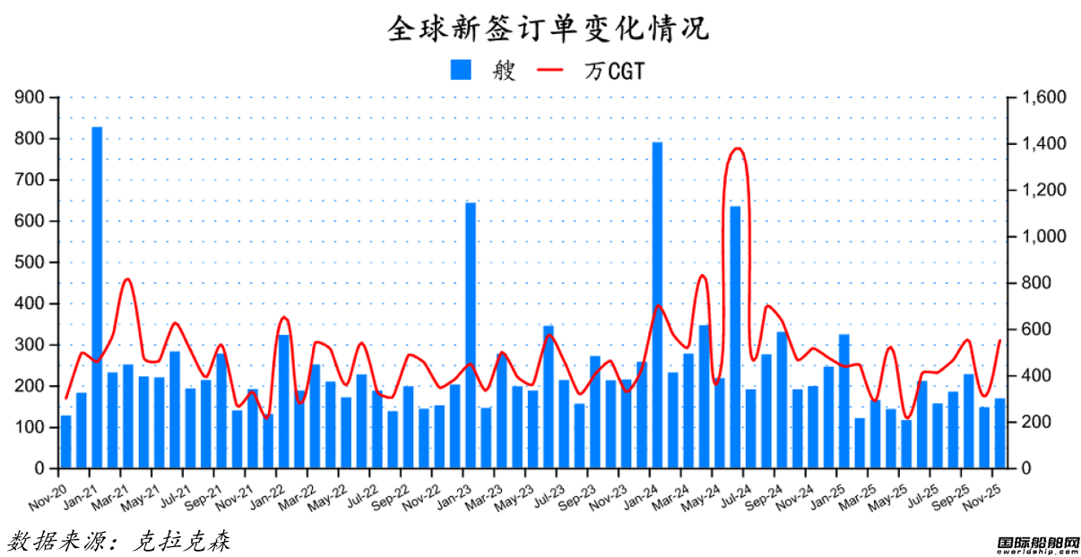 图片说明:全球新签订单变化情况,数据来源于克拉克森、国际船舶网