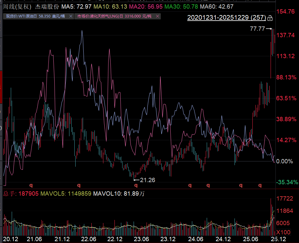 杰瑞股份(002353.SZ)的近期市场表现,成为观察这一趋势的典型案例。长期以来,该公司被视为油气装备周期股。然而,今年以来其股价走势呈现显著独立于油气价格的特征。市场对其定价逻辑正在发生根本性转变,从“强周期属性”向“高成长驱动”范式迁移。