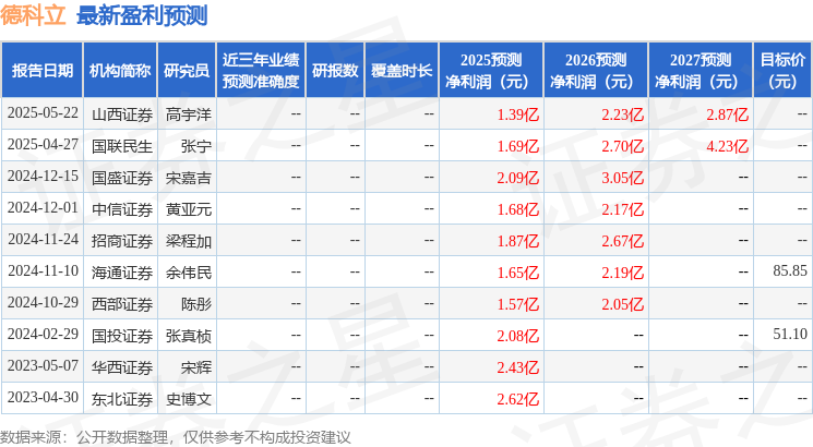 以下是详细的盈利预测信息: