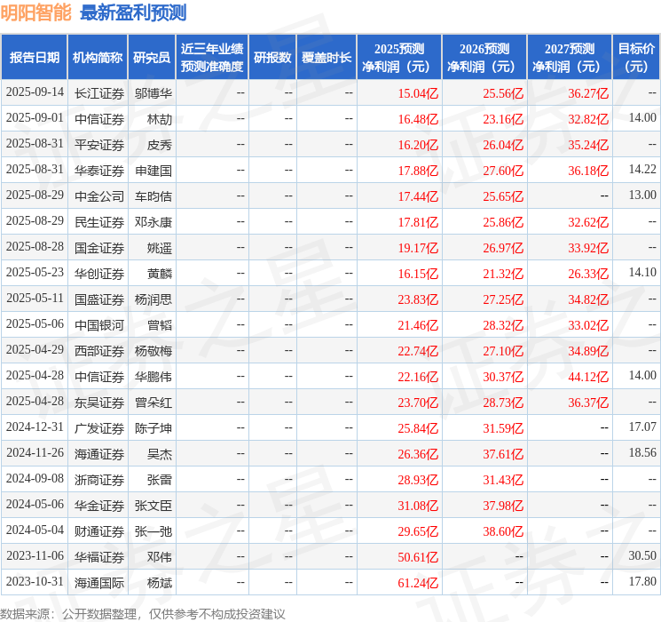 以下是详细的盈利预测信息: