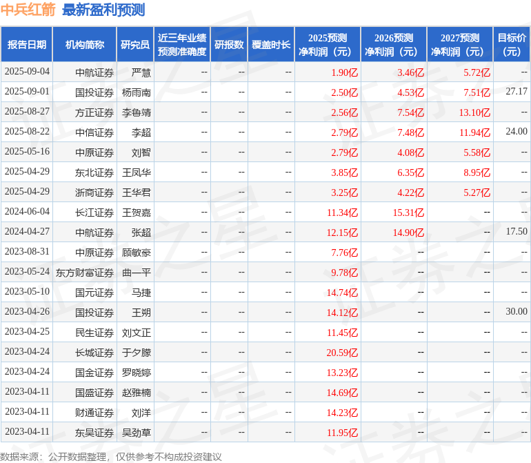 以下是详细的盈利预测信息: