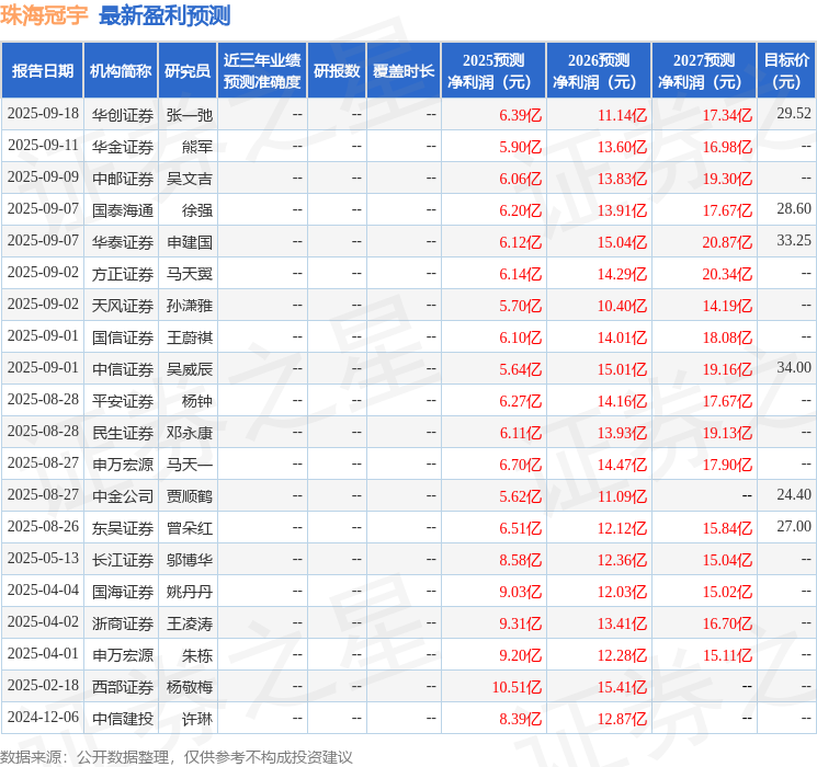 以下是详细的盈利预测信息:
