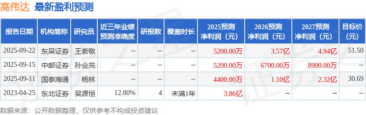 以下是详细的盈利预测信息: