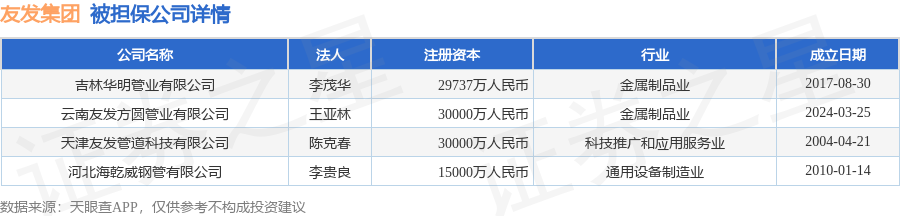 友发集团10月9日披露5笔对外担保,被担保公司4家。对外担保明细如下表: