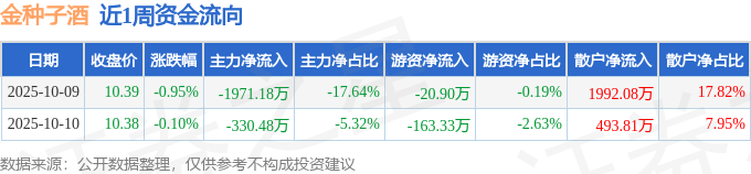 资金流向数据方面,本周金种子酒主力资金合计净流出2301.66万元,游资资金合计净流出184.23万元,散户资金合计净流入2485.89万元。本周资金流向一览见下表: