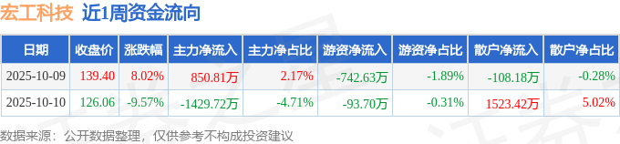 资金流向数据方面,本周宏工科技主力资金合计净流出578.91万元,游资资金合计净流出836.33万元,散户资金合计净流入1415.24万元。本周资金流向一览见下表:
