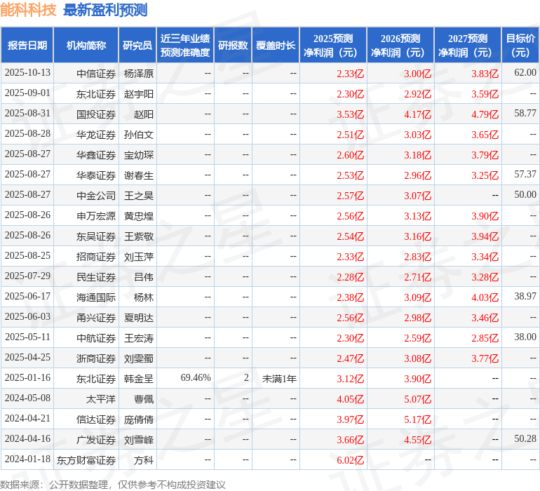 以下是详细的盈利预测信息: