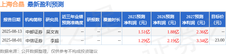 证券之星消息,2025年10月21日上海合晶(688584)发布公告称公司于2025年10月17日接受机构调研,中信证券股份有限公司、中国国际金融股份有限公司、中邮证券有限责任公司、国金证券股份有限公司、东北证券股份有限公司、华安证券股份有限公司、青骊投资管理(上海)有限公司、上海汐泰投资管理有限公司、北京金九瑞和私募基金管理有限公司参与。
