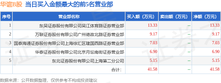 证券之星消息,沪深交易所2025年10月22日公布的交易公开信息显示,华谊B股(900909)因有价格涨跌幅限制的日收盘价格跌幅偏离值达到7%的前五只证券登上龙虎榜。此次是近5个交易日内第1次上榜。