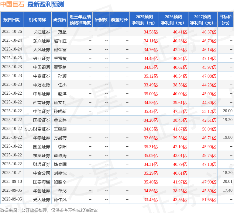 以下是详细的盈利预测信息: