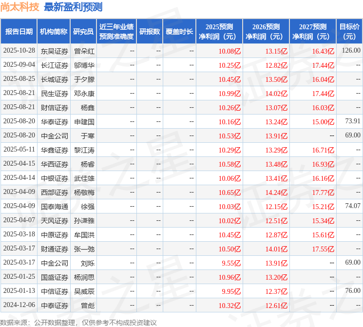 以下是详细的盈利预测信息: