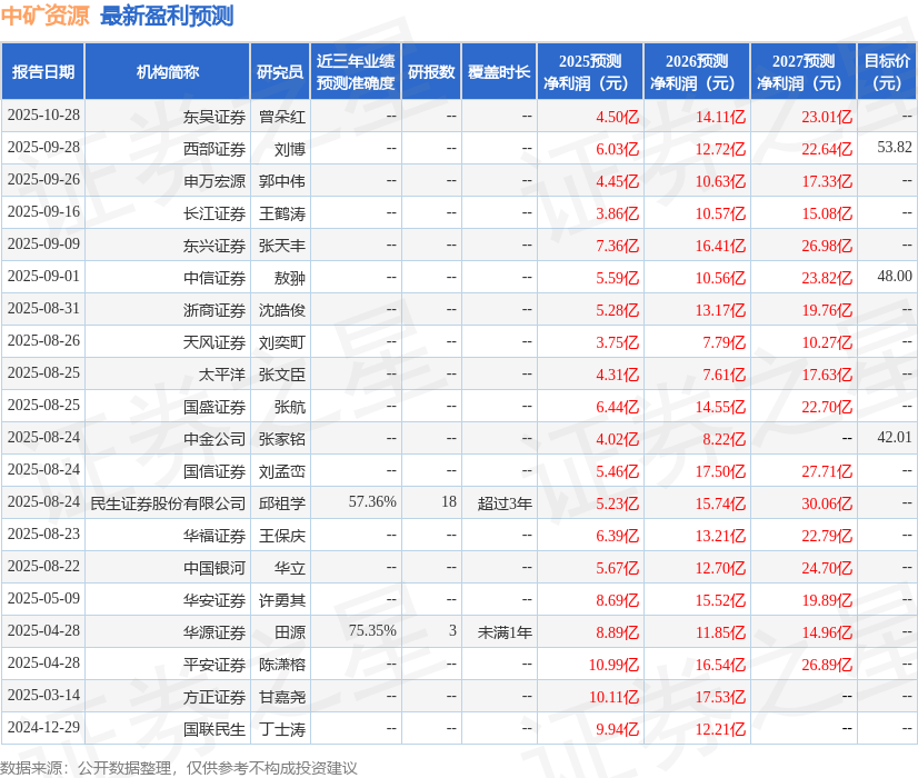 证券之星消息,2025年10月29日中矿资源(002738)发布公告称公司于2025年10月28日进行路演,诚通证券股份有限公司、国泰基金股份有限公司、北京睿石泓远投资管理有限公司、北京腾业资本管理有限公司、北京鑫翰资本管理有限公司、北京煜诚私募基金管理有限公司、北京泽铭投资有限公司、北京泽石资本有限公司、北京志开投资管理有限公司、佛山市东盈投资管理有限公司、北京中泽控股集团有限公司、高盛(亞洲)有限責任公司、国投证券股份有限公司、歌斐资产管理有限公司、广东民营投资股份有限公司、广东谢诺辰阳私募证券投资管理有限公司、广东正圆私募基金管理有限公司、广发乾和投资有限公司、国信弘盛创业投资有限公司、海南峰辰私募基金管理有限公司、海南富道私募基金管理有限公司、海南智联私募基金管理有限公司、杭州博衍私募基金管理合伙企业(有限合伙)、国信证券股份有限公司、鸿运私募基金管理有限公司、环懿投资基金管理有限公司、君联资本有限公司、老虎寰投咨询管理(上海)有限公司、南京天奥投资管理有限公司、宁波量利私募基金管理有限公司、青岛宁泽私募基金管理有限公司、青骊基金管理有限公司、瑞信资产管理有限公司、三和投资有限公司、红塔证券股份有限公司、森锦投资有限公司、厦门财富管理顾问有限公司、上海半夏投资管理中心(有限合伙)、上海宝鼎投资股份有限公司、上海晨燕资产管理中心(有限合伙)、上海承周资产管理有限公司、上海乘是资产管理有限公司、上海大墉资产管理有限公司、上海递归私募基金管理有限公司、上海东方证券资产管理有限公司、华福证券股份有限公司、上海高毅资产管理合伙企业(有限合伙)、上海亘曦私募基金管理有限公司、上海国际信托有限公司、上海合道资产管理有限公司、深圳市四海圆通投资有限公司、深圳市晓扬科技投资有限公司、上海鹤禧私募基金管理有限公司、上海混沌道然资产管理有限公司、上海聚鸣投资管理有限公司、上海开思私募基金管理有限公司、华泰联合证券有限责任公司、上海六禾投资有限公司、上海明河投资管理有限公司、上海盘京投资管理中心(有限合伙)、上海旗美投资管理有限公司、上海森锦投资管理有限公司、上海曜川私募基金管理有限公司、上海奕旻投资管理有限公司、上海益和源资产管理有限公司、上海原点资产管理有限公司、上海原泽私募基金管理有限公司、华西证券股份有限公司、上海长见投资管理有限公司、深圳创富兆业金融管理有限公司、深圳和沐投资管理有限公司、深圳清水源投资管理有限公司、深圳市東方富海投資管理股份有限公司、深圳市火神投资管理有限公司、深圳市凯丰投资管理有限公司、深圳市尚诚资产管理有限责任公司、深圳市泽鑫毅德投资管理企业(有限合伙)、深圳市中道资产管理有限公司、华源证券股份有限公司、深圳长润君和资产管理有限公司、深圳昭阳投资管理有限公司、世真投资管理有限公司、苏州证禾基金管理有限公司、太和致远私募基金管理有限公司、万霁资产管理有限公司、闻天私募证券投资基金管理(广州)有限公司、西安江岳私募基金管理有限公司、西藏合众易晟投资管理有限责任公司、西藏中睿合银投资管理有限公司、金元证券股份有限公司、相生资产管理有限公司、新华三集团有限公司、新华资产管理股份有限公司、阳光资产管理股份有限公司、盈峰资本管理有限公司、长见投资管理有限公司、开源证券股份有限公司、东北证券股份有限公司、申万宏源证券有限公司、五矿证券有限公司、兴业证券股份有限公司、银河证券股份有限公司、长江证券股份有限公司、浙商证券股份有限公司、中航证券有限公司、中泰证券股份有限公司、中信证券股份有限公司、中邮证券股份有限公司、东吴证券股份有限公司、渤海银行股份有限公司、财通证券资产管理有限公司、创金合信基金管理有限公司、大湾区发展基金管理有限公司、东兴基金管理有限公司、方正富邦基金管理有限公司、富国基金管理有限公司、格林基金管理有限公司、工银理财有限责任公司、工银瑞信基金管理有限公司、东兴证券股份有限公司、光大保德信基金管理有限公司、广发银行股份有限公司、国泰君安国际控股有限公司、和谐健康保险股份有限公司、泓德基金管理有限公司、华安基金管理有限公司、华富基金管理有限公司、华泰保兴基金管理有限公司、汇添富基金管理股份有限公司、嘉合基金管理有限公司、广发证券股份有限公司、嘉实基金管理有限公司、建信养老金管理有限责任公司、景顺长城基金管理有限公司、摩根基金管理(中国)有限公司、摩根士丹利基金管理(中国)有限公司、摩根士丹利亞洲有限公司、南方基金管理股份有限公司、平安基金管理有限公司、平安养老有限公司、浦银安盛基金管理有限公司、方正证券股份有限公司、前海开源基金管理有限公司、太平洋证券股份有限公司、太平洋资产管理有限责任公司、泰康基金管理有限公司、西部利得基金管理有限公司、湘财基金管理有限公司、鑫元基金管理有限公司、信达澳亚基金管理有限公司、兴证全球基金管理有限公司、易方达基金管理有限公司、光大证券股份有限公
