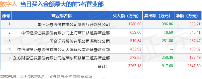 证券之星消息,沪深交易所2025年10月31日公布的交易公开信息显示,数字人(920670)因当日换手率达到20%的前5只股票登上龙虎榜。此次是近5个交易日内第3次上榜。