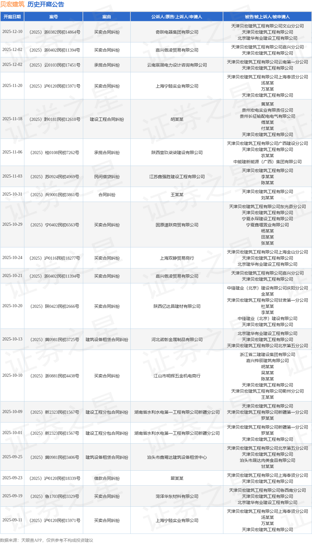 证券之星消息,根据天眼查APP显示,近日公布了一则天津贝宏建筑工程有限公司作为被告/被上诉人的开庭公告,详细内容如下: