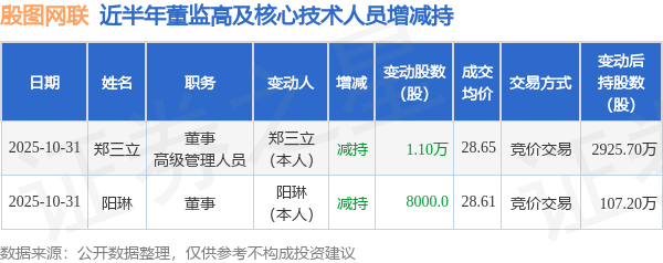 殷图网联:10月31日高管郑三立、阳琳减持股份合计1.9万股