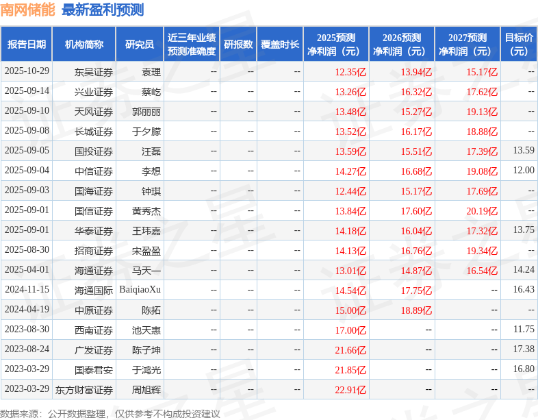 南网储能2025年三季报显示,前三季度公司主营收入53.2亿元,同比上升17.72%;归母净利润14.33亿元,同比上升37.13%;扣非净利润14.31亿元,同比上升35.3%;其中2025年第三季度,公司单季度主营收入20.19亿元,同比上升25.59%;单季度归母净利润6.01亿元,同比上升43.41%;单季度扣非净利润5.93亿元,同比上升39.95%;负债率53.29%,投资收益3185.71万元,财务费用3.36亿元,毛利率54.9%。