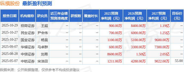 证券之星消息,2025年11月4日纵横股份(688070)发布公告称国金证券、观今股权、富邦金马基金、灵坦基金、中泰安合于2025年10月31日调研我司。