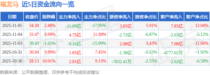 11月5日的资金流向数据方面,主力资金净流出11.69亿元,占总成交额17.95%,游资资金净流入3.85亿元,占总成交额5.91%,散户资金净流入7.85亿元,占总成交额12.04%。