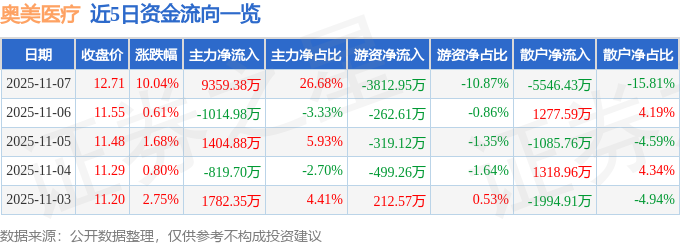 11月7日的资金流向数据方面,主力资金净流入9359.38万元,占总成交额26.68%,游资资金净流出3812.95万元,占总成交额10.87%,散户资金净流出5546.43万元,占总成交额15.81%。