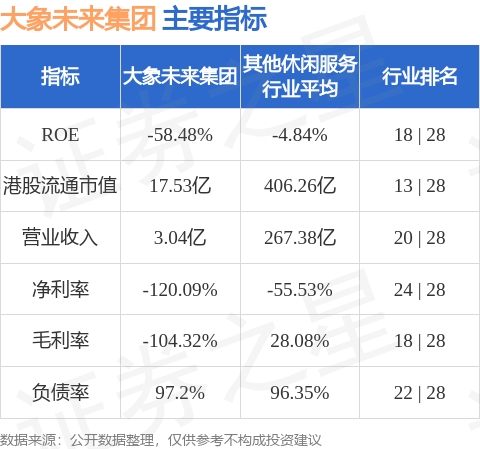 大象未来集团港股市值17.53亿港元,在其他休闲服务行业中排名第13。主要指标见下表: