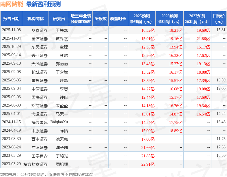 以下是详细的盈利预测信息: